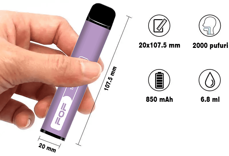 umeline FOF KT-1 este o tigara electronica de unica folosinta destinata persoanelor care vor sa renunte la fumatul traditional. Mini narghileaua se activeaza automat prin inhalare, nu necesita incarcare, umplere sau vreo pregatire prealabila.