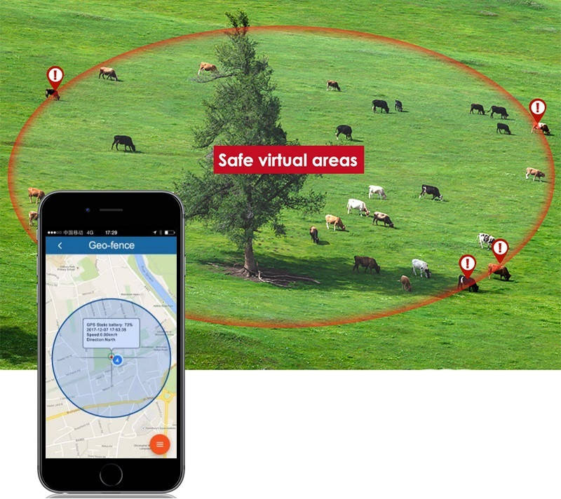 GPS tracker-ul are functia “geo-fence” care stabileste un anumit perimetru al habitatului pentru animal. Poti crea zone virtuale sigure pentru animale, de indata ce animalele ies sau intra in acele zone, vei primi notificari de alerta.