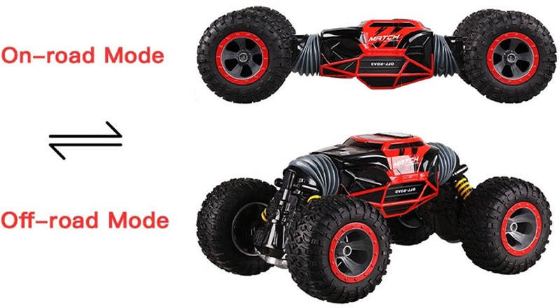 Masinuta poate fi comutata din modul on-road in modul off-road, ceea ce inseamna ca poate fi utilizata pe suprafetele plane si netede, precum si pe terenuri accidentate.