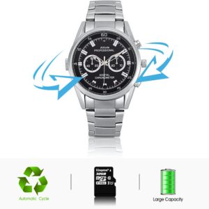 Design elegant si discret – aceasta camera arata exact ca un ceas pentru barbati; este aproape imposibil sa detectezi cu ochiul liber obiectivul camerei spion din cadranul ceasului, iar portul de conectare USB este proiectat sa arate ca un alt buton, asa ca nimeni nu va banui ca este un dispozitiv de supraveghere.