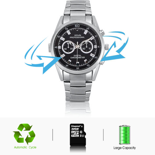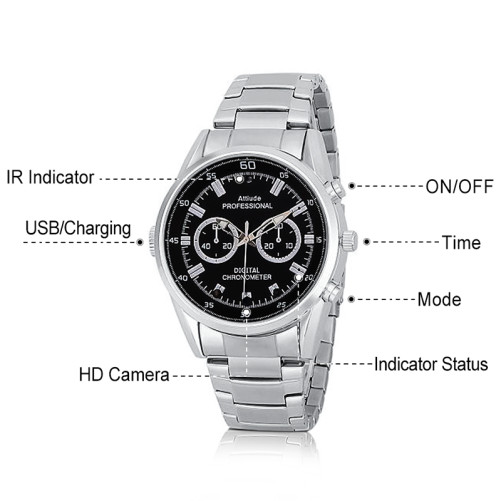 Daca trebuie sa inregistrati videoclipuri sau sa faceti fotografii in timpul noptii, acesta dispune de vedere nocturna cu infrarosu, fara lumina rosie intermitenta vizibila. Nimeni nu va banui ca ii inregistrati sau ii spionati, deoarece acest ceas arata ca orice ceas obisnuit.