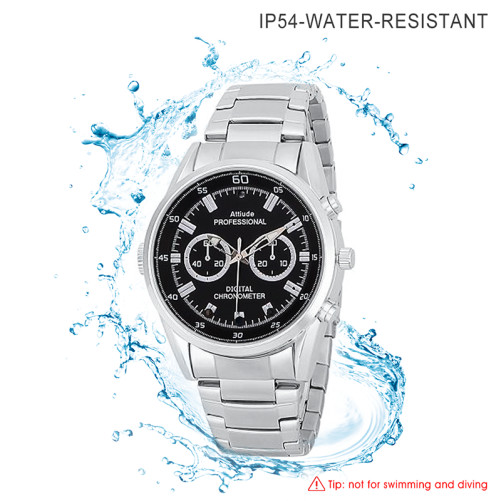 Rezistent la apa – ceasul este rezistent la apa IP-54, potrivit pentru utilizare in aer liber pe ploaie, dar nu este potrivit pentru inot sau scufundare in apa.