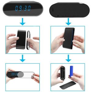 Aceasta camera spion, disimulata intr-un ceas de birou, este o alegere excelenta pentru imbunatatirea securitatii la domiciliu. Il puteti plasa oriunde simtiti ca bunurile dvs. personale ar putea fi in pericol.