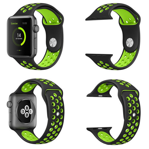 Curea pentru Apple Watch 1/2/3/4/5/6/7 44 mm Silicon Sport umeline Negru-Verde la umeline.ro!