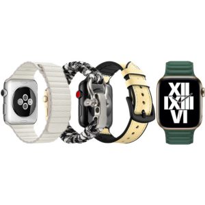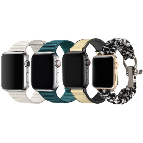 Set 4 Curele umeline compatibile cu Apple Watch, 42 mm, Alb, Verde, Crem, Negru/Alb