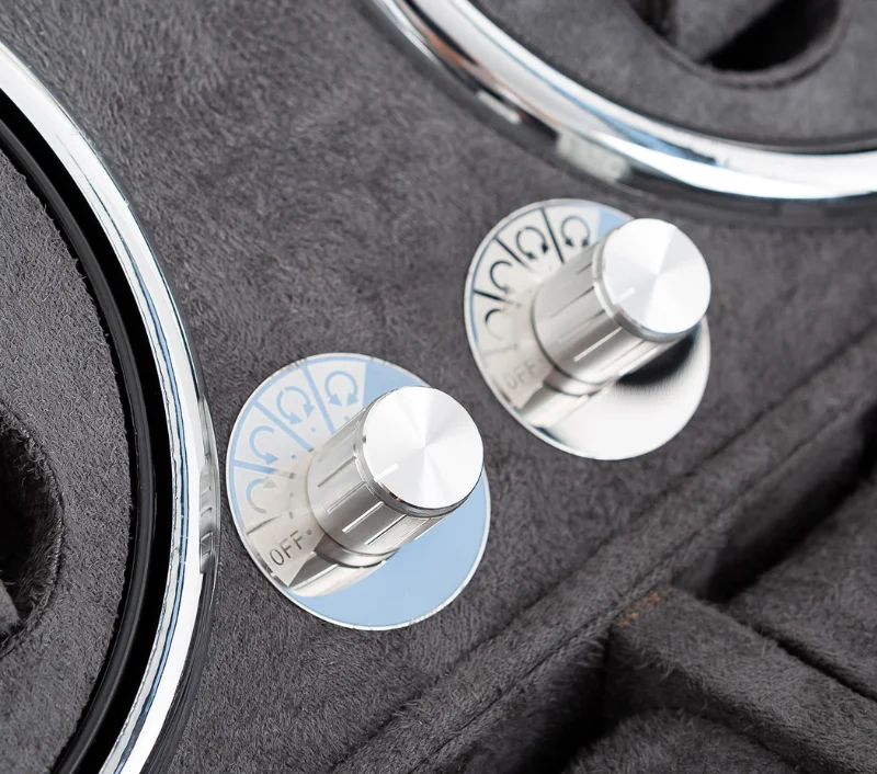 Watch Winder-ul functioneaza cu patru programe de rotatie, care pot fi selectate utilizand butonul rotativ din interior: