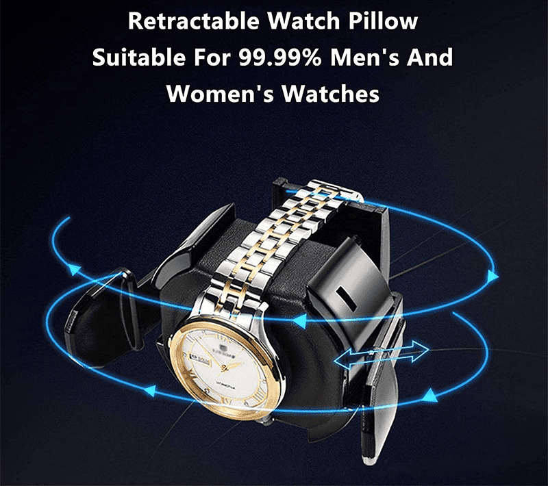 Cutia de intors ceasuri automatice contine un suport moale si retractabil care se potriveste celor mai multe dimensumeline si stiluri de curele si bratari de ceas. Poate fi folosit atat pentru ceasuri pentru barbati, cat si pentru femei.