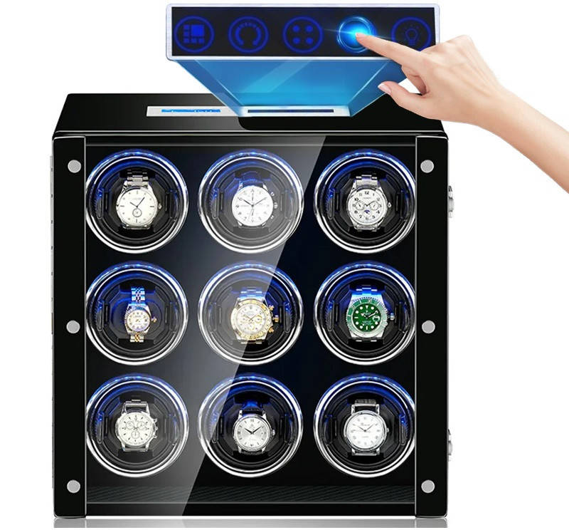Cutie intors ceasuri automatice umeline, Luxury Watch Winder 9, Touchscreen, Negru la umeline.ro