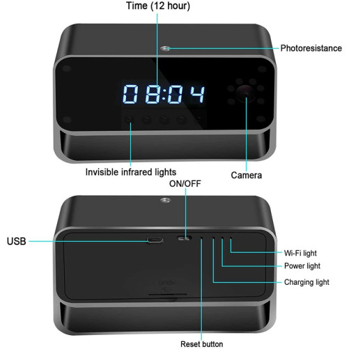 Inregistreaza si incarca in acelasi timp (functioneaza 24 din 24) – aceasta camera ascunsa wifi este echipata cu o baterie reincarcabila de 2600mAh. Il puteti conecta la o priza electrica sau la o sursa de alimentare portabila pentru functionare continua.