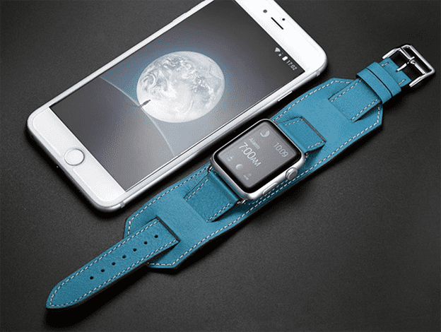 Curea pentru Apple Watch 1/2/3/4/5/6/7 38 mm Piele 4 in 1 umeline Cuff Albastru la umeline.ro!