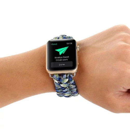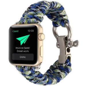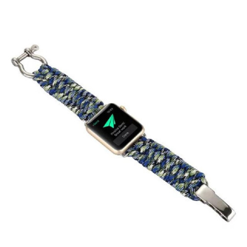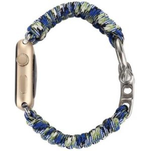 Curea pentru Apple Watch 1/2/3/4/5/6/7 38 mm umeline Elastic Paracord Rugged Nylon Rope, Albastru si Verde la umeline.ro!