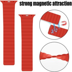 Curea umeline compatibila cu Apple Watch 1/2/3/4/5/6/7, 44mm, Silicon Magnetic, Red la umeline.ro!