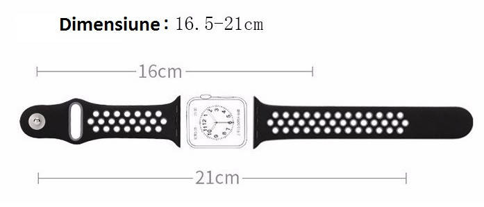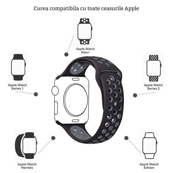 Curea umeline compatibila cu Apple Watch 1/2/3/4/5/6/7, 38mm, Silicon Sport, Negru/Argintiu