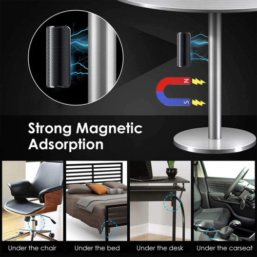 Datorita magnetului, il puteti atasa cu usurinta pe o suprafata metalica, de exemplu sub scaun, sub birou etc.