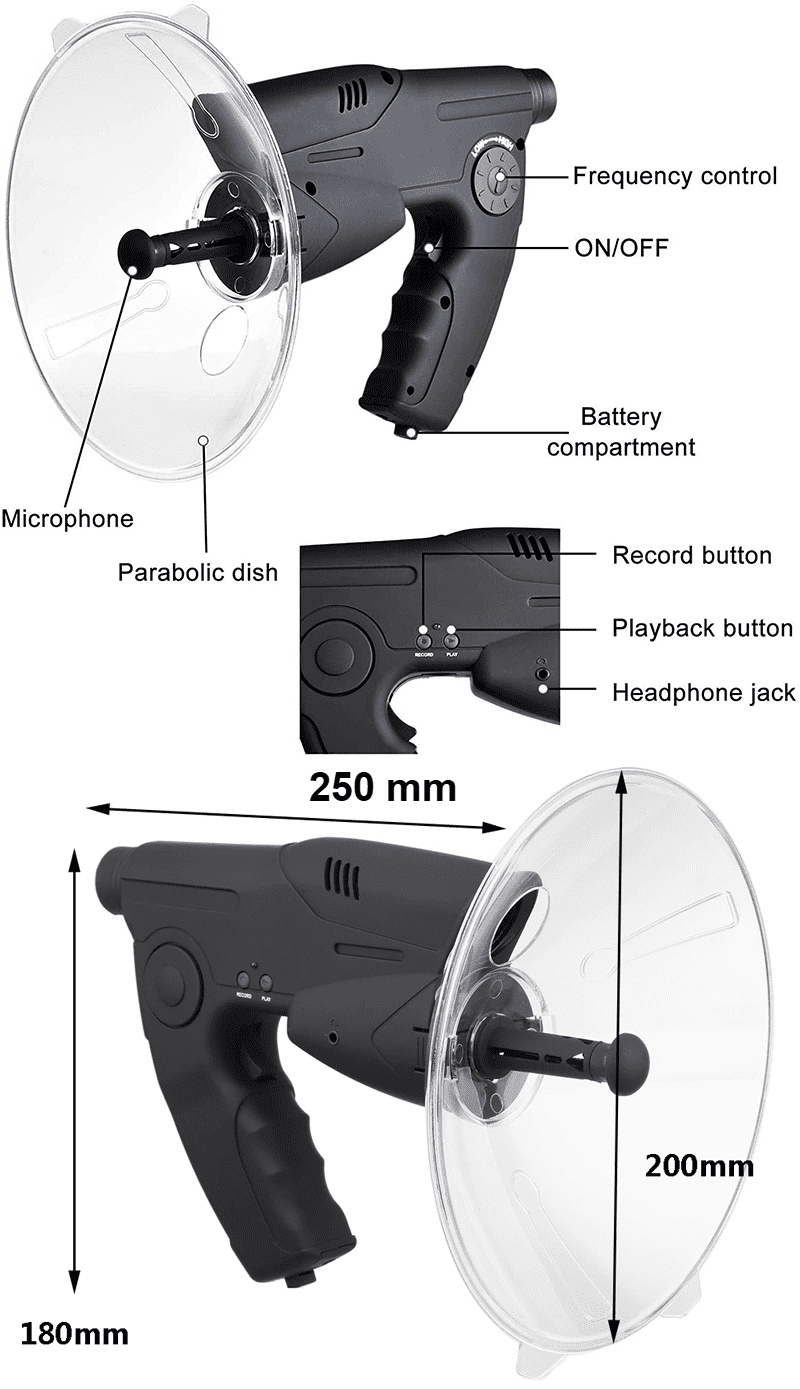 Il poti folosi pentru a asculta zgomotele animalelor si ale naturii sau pentru a asculta conversatii fara ca persoana care vorbeste sa-si dea seama!