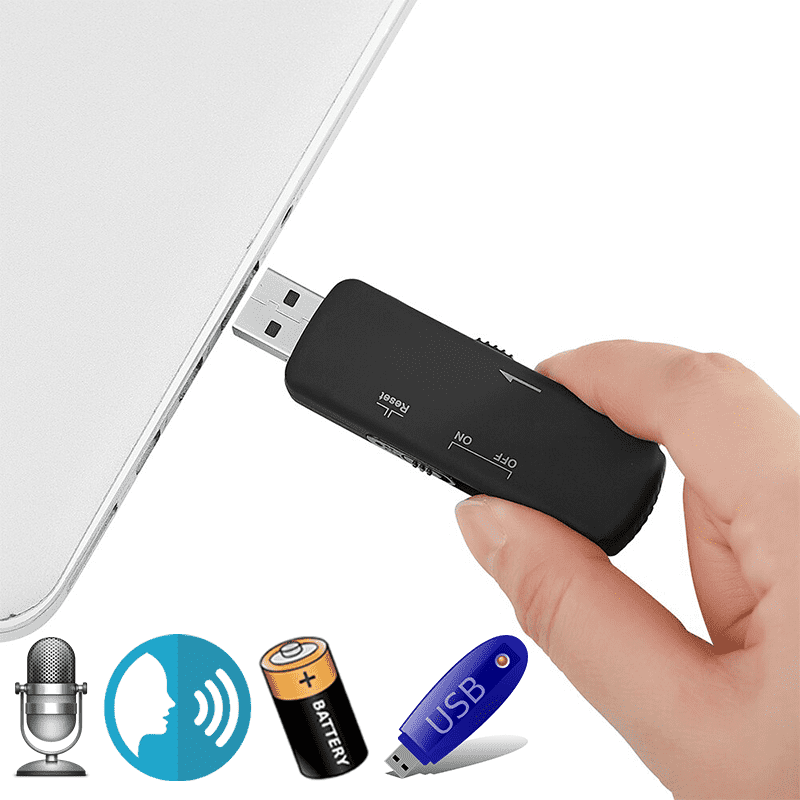Stick-ul de memorie USB umeline STK97 cu activare vocala arata si functioneaza ca o unitate flash obisnuita. Cu toate acestea, acest dispozitiv de stocare ascunde un microfon ascuns super sensibil care poate inregistra sunet pe o raza de 8 metri.