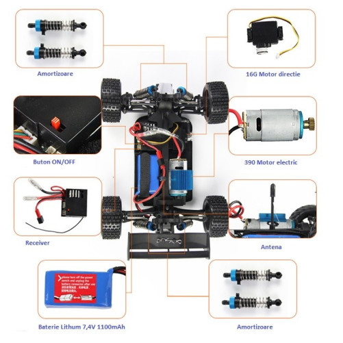 Baterie pentru masinuta: 7.4V 1400mAh Li-Ion (inclusa)