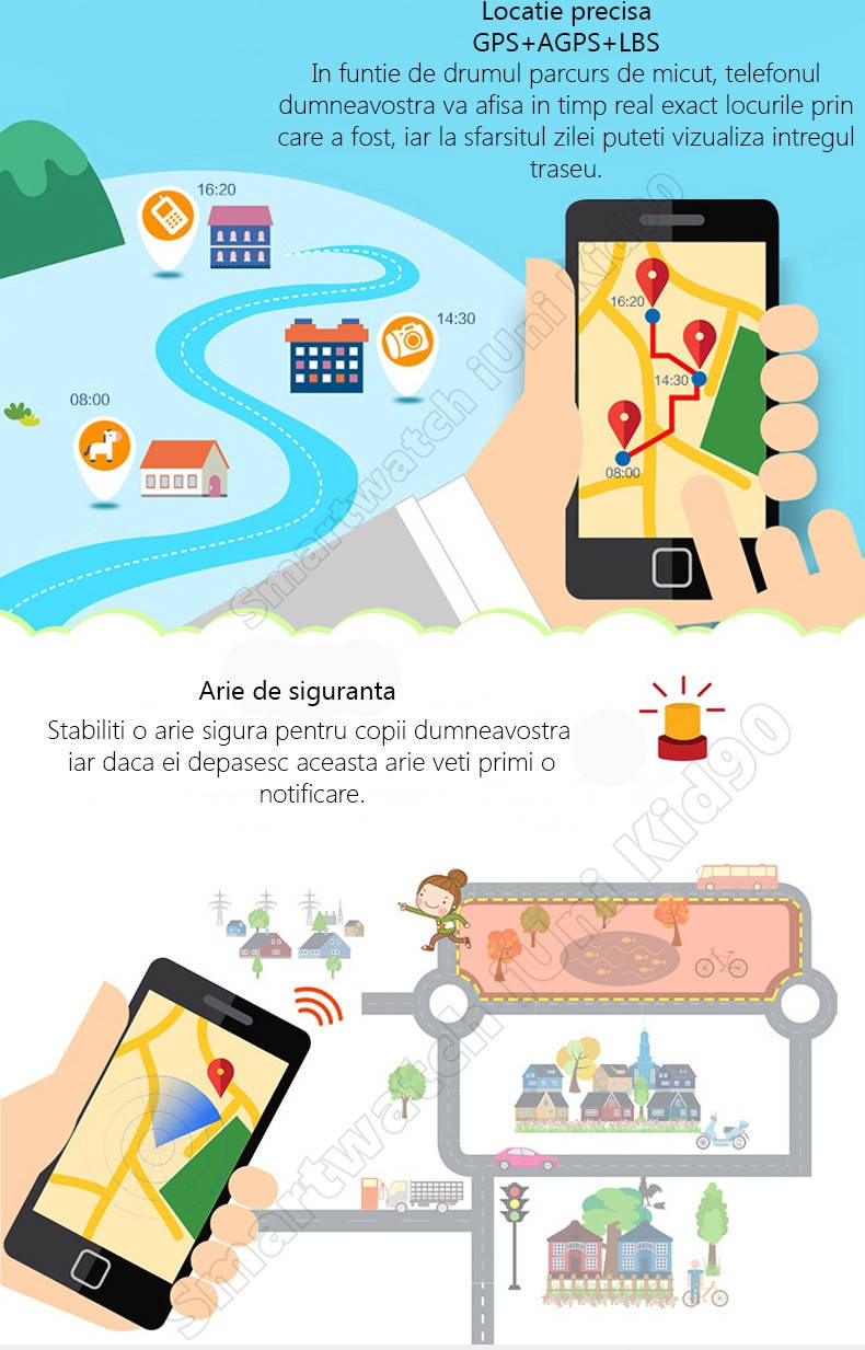 Ceas Smartwatch copii cu GPS umeline Q90, Touchscreen, Telefon incorporat, Buton SOS, Portocaliu