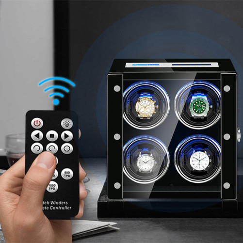 Cutia poate mentine in miscare patru ceasuri simultan. Rotoarele pot fi programate sa functioneze independent. Poti seta un program individual pentru fiecare rotor, in functie de modelul de ceas pe care il plasezi. Poti alege numarul de rotatii pe zi de la 650 la 1950 TPD(Turns Per Day) in combinatie cu orice directie de rotatie. Ecranul tactil LCD si telecomanda inclusa iti permit o configurare usoara.