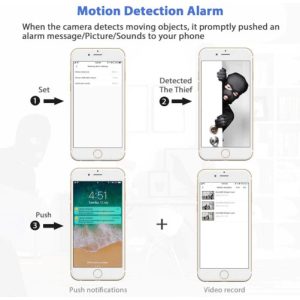 De indata ce a fost detectata o miscare, camera va trimite notificari de tip alerta pe telefonul dumneavoastra. Puteti seta manual sensibilitatea senzorului (scazut/mediu/ridicat) pentru a ajuta la prevenirea alarmelor false.