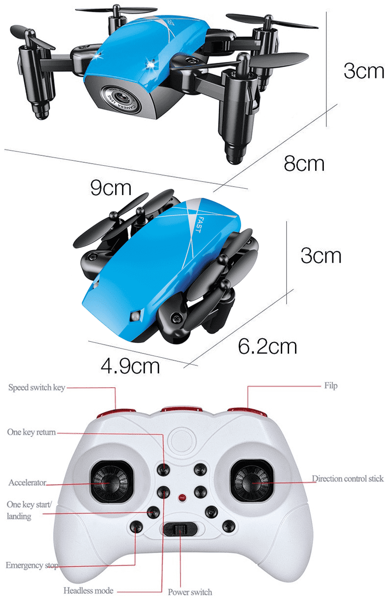 • Dimensiune drona desfacuta: 9 x 8 x 3 cm