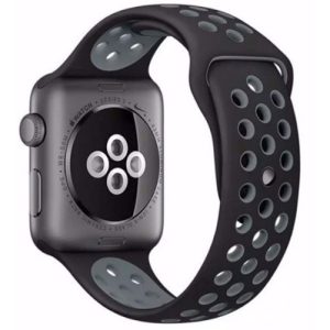 Curea umeline compatibila cu Apple Watch 1/2/3/4/5/6/7, 40mm, Silicon Sport, Negru/Argintiu
