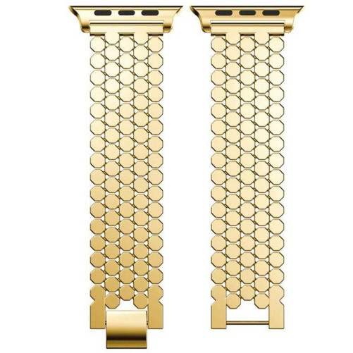 Aceasta bratara de culoare Gold (nuanta, tonul si intensitatea culorii pot varia in functie de monitor) este special conceputa pentru utilizatorii de Apple Watch 1/2/3/4/5/SE/6/7 cu dimensiunea de 42 mm.